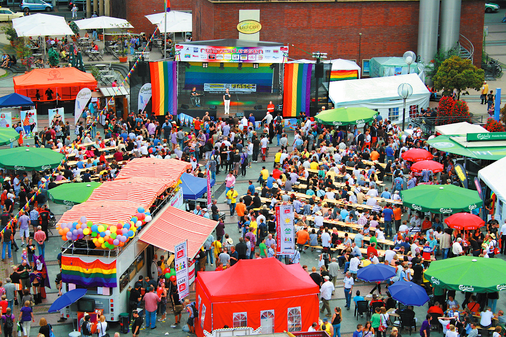 in Essen wandert von seinem „Stammplatz” vom 1. Samstag im August auf den zweiten Samstag (8.8.26). Es ist das größte queere Straßenfest im Ruhrgebiet (Foto).